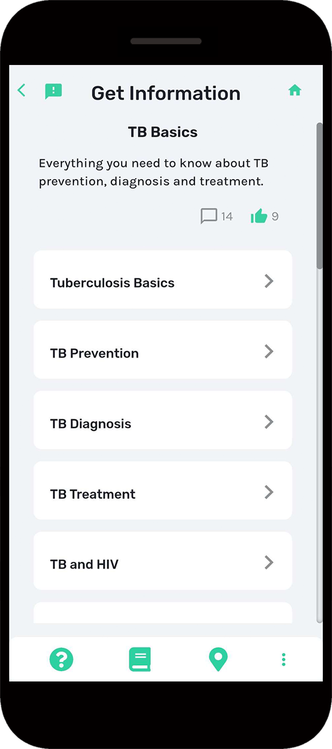 The module allows people affected by TB to report of different barriers to access and actively participates in engaging with other affected people.